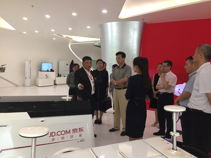 图三:宋建朝党组成员、金发忠主任(左三)、张华荣主任(左一)参观京东数据中心展厅