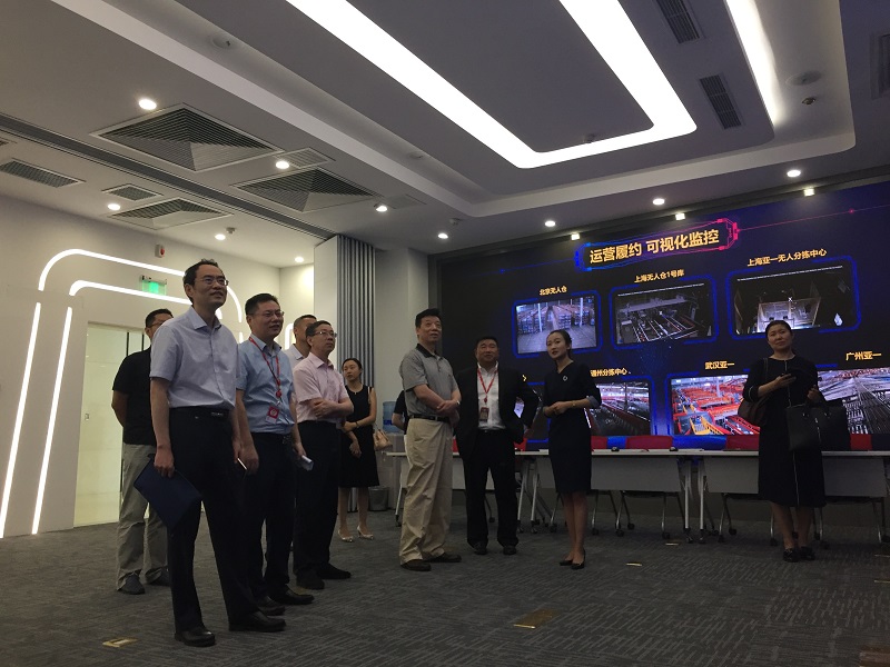 图三:宋建朝党组成员、金发忠主任(左三)、张华荣主任(左一)参观京东数据中心展厅